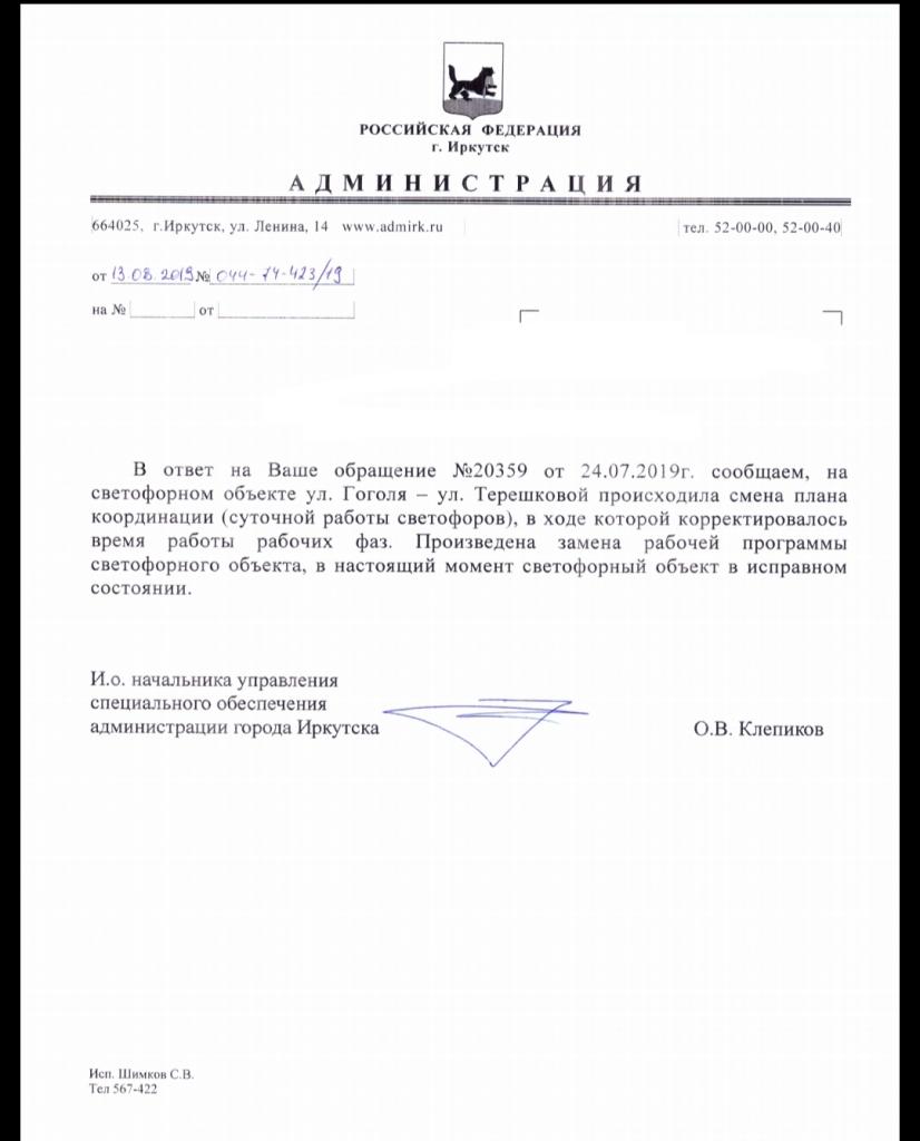 айГражданинОтправлено 24.07.2019: "Администрация города Иркутска"