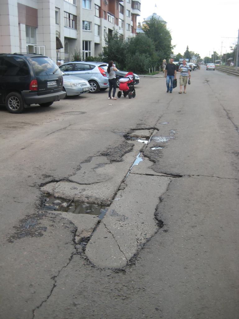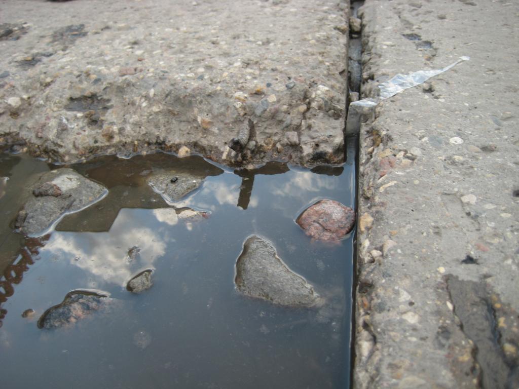 Огромная яма. После дождя превращается в огромную лужу. Фото прилагается.