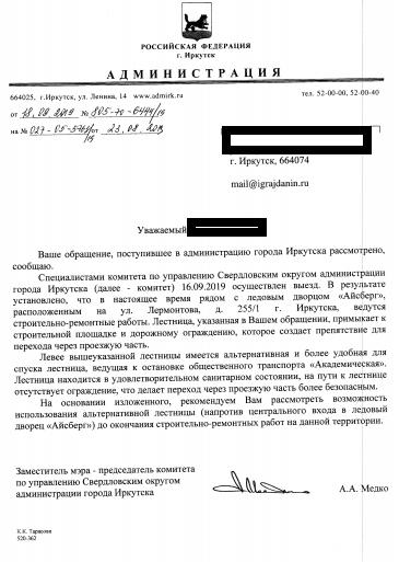 айГражданинОтправлено 22.08.2019: "Администрация города Иркутска"