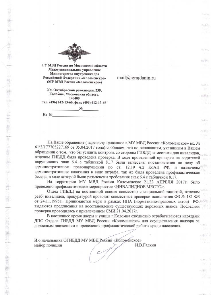 айГражданинОтправлено 03.04.2017: "Управление ГИБДД ГУ МВД РФ по Московской области"