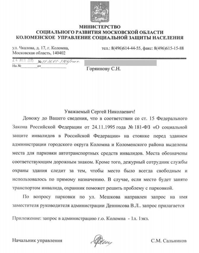 айГражданинПоступил ответ из коломенского управления социальной защиты населения.