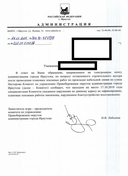 айГражданинОтправлено 14.10.2019: "Администрация города Иркутска"
