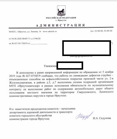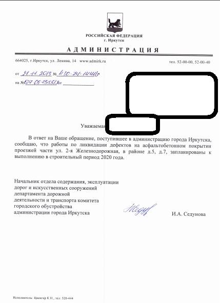 айГражданинОтправлено 01.11.2019: "Администрация города Иркутска"