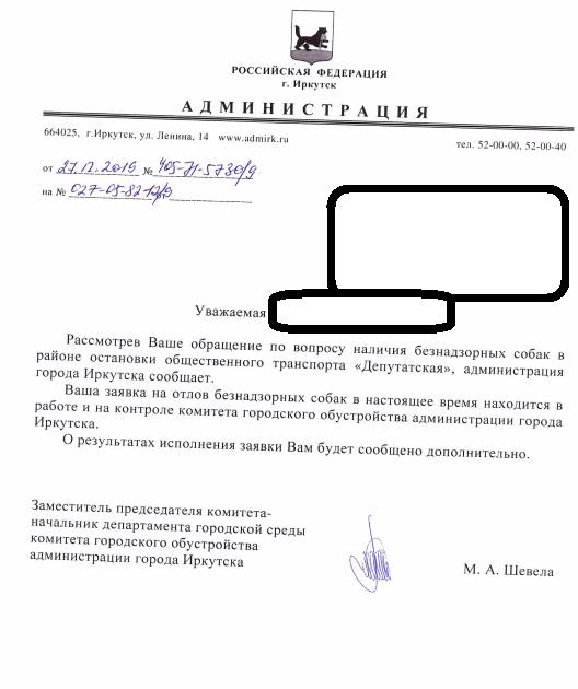 Отправлено 03.12.2019: "Администрация города Иркутска"