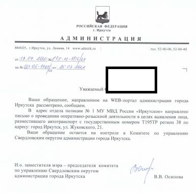 айГражданинОтправлено 24.03.2020: "Администрация города Иркутска"