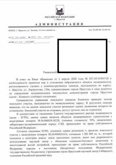 айГражданинОтправлено 02.04.2020: "Администрация города Иркутска"