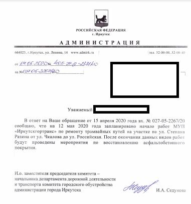 айГражданинОтправлено 30.05.2020: "Администрация города Иркутска"