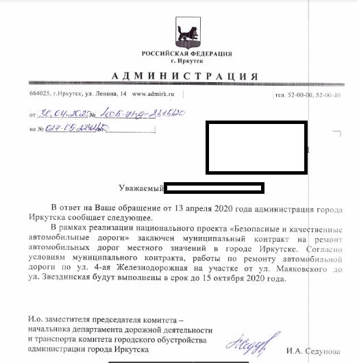 айГражданинОтправлено 13.04.2020: "Администрация города Иркутска"
