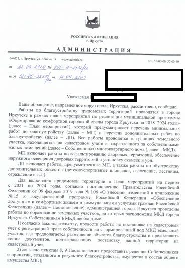 Отправлено 13.04.2020: "Администрация города Иркутска"
