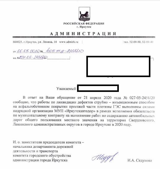 айГражданинОтправлено 18.05.2020: "Администрация города Иркутска"