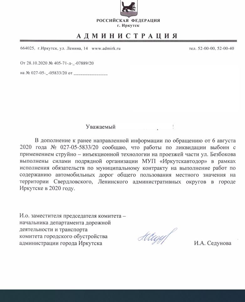 айГражданинОтправлено 28.05.2020: "Администрация города Иркутска"