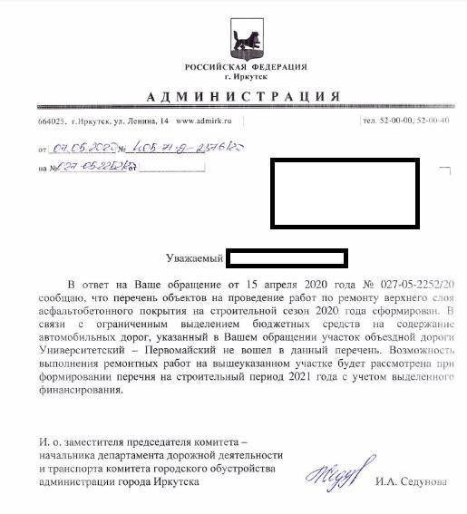 айГражданинОтправлено 26.07.2020: "Министерство строительства, дорожного хозяйства Иркутской области"