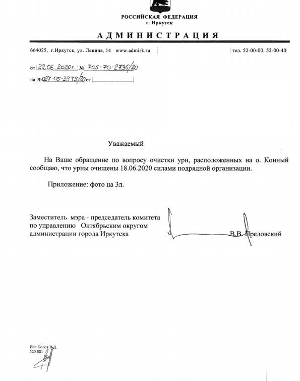 айГражданинОтправлено 14.06.2020: "Администрация города Иркутска"