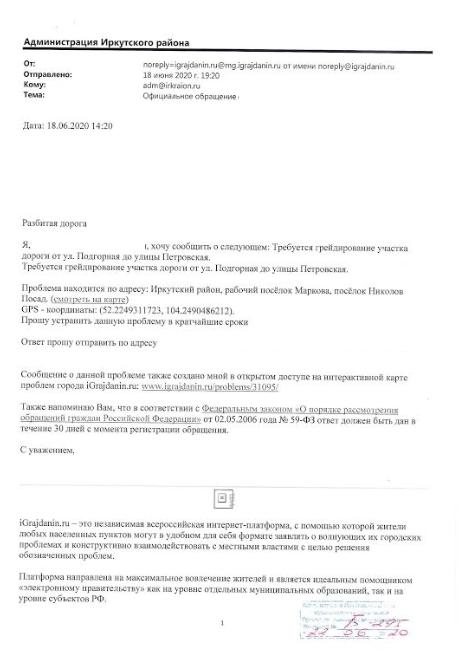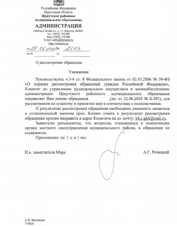 айГражданинОтправлено 18.06.2020: "Администрация Иркутского районного муниципального образования"