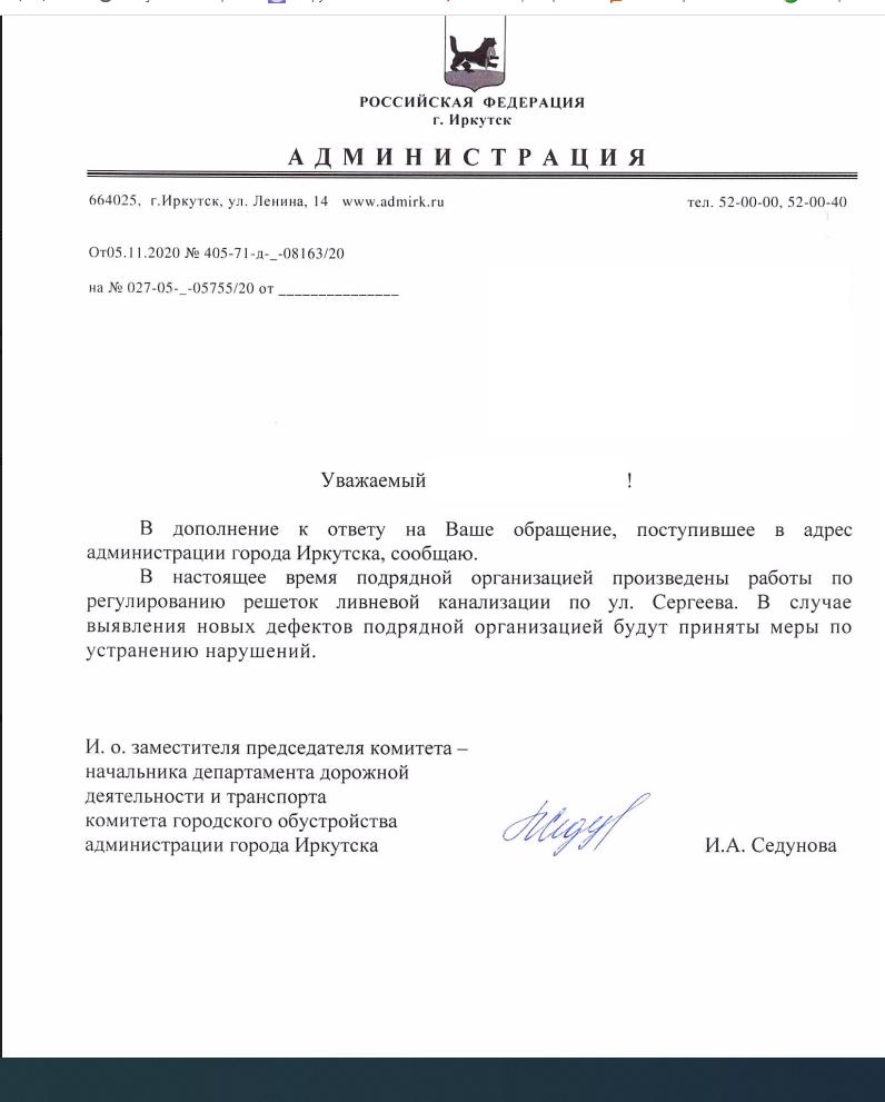 айГражданинОтправлено 14.09.2020: "Администрация города Иркутска"