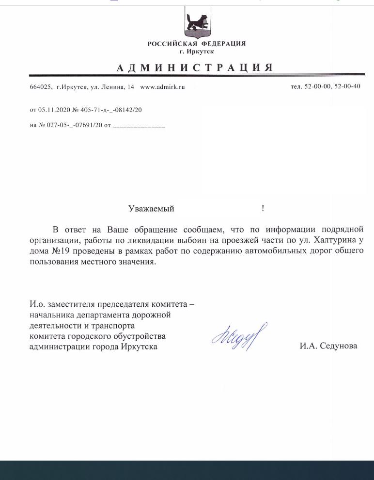 Отправлено 29.09.2020: "Администрация города Иркутска"