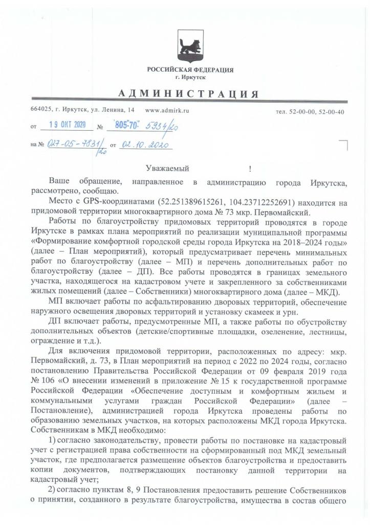 айГражданинОтправлено 30.09.2020: "Администрация города Иркутска"