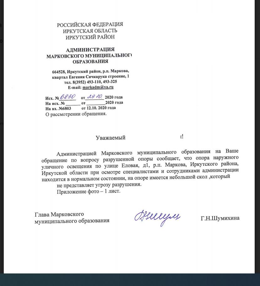 айГражданинОтправлено 02.10.2020: "Администрация Иркутского районного муниципального образования"