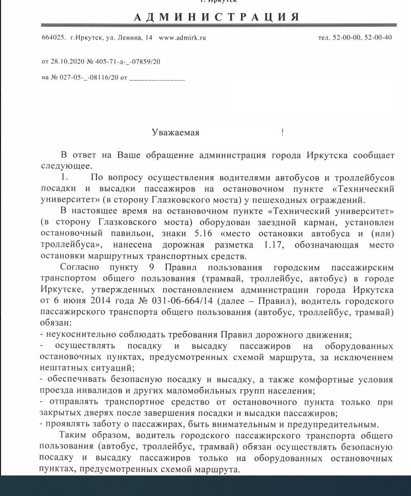 айГражданинОтправлено 11.10.2020: "Администрация города Иркутска"