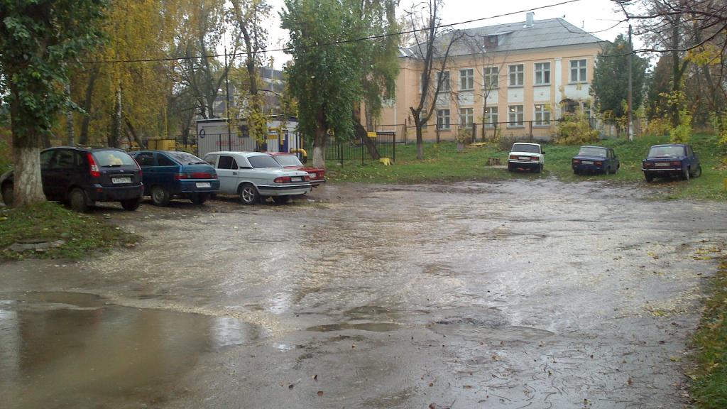 16.10.13 во дворе появились бордюры и спецтехника. Бригадир, выходец из ближнего зарубежья, в приватной беседе поделился. что будет сделана стоянка и через весь двор (см. первое фото) проложена заасфальтированная дорожка, а вот дорожки, ведущие от подъездов в автостоянке, так и останутся в плачевном состоянии... А еще поднимут уровень тротуара напротив дома 29 по ул. Красногвардейской, где после дождей лужи неделями не просыхают.