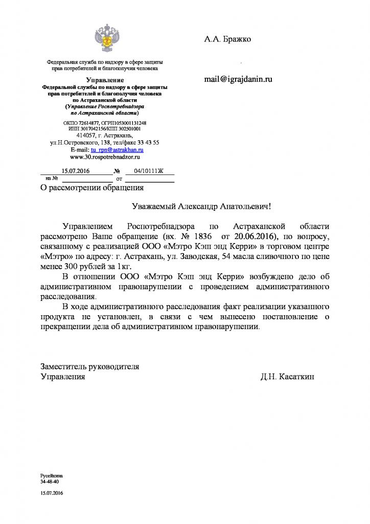 Отправлено 17.06.2016: "Управление Федеральной службы по надзору в сфере защиты прав потребителей и благополучия человека по Астраханской области"