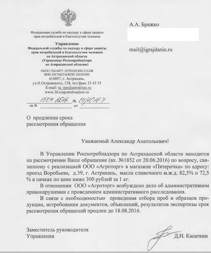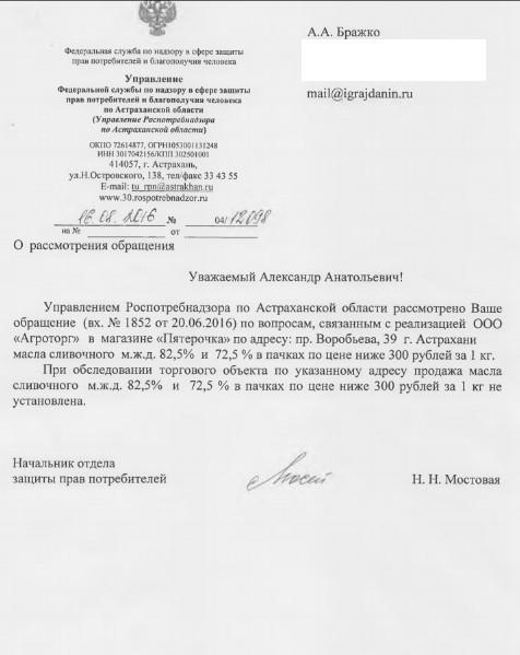 айГражданинОтправлено 17.06.2016: "Управление Федеральной службы по надзору в сфере защиты прав потребителей и благополучия человека по Астраханской области"