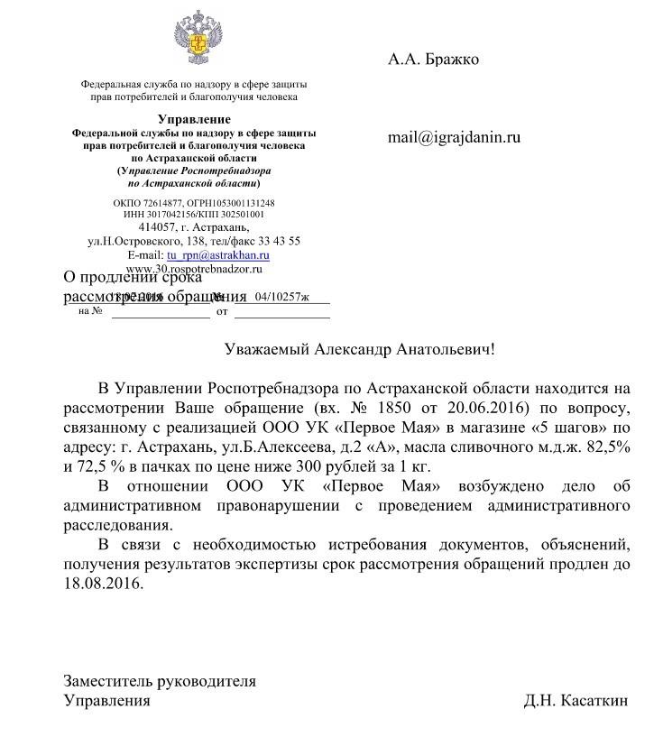 айГражданинОтправлено 17.06.2016: "Управление Федеральной службы по надзору в сфере защиты прав потребителей и благополучия человека по Астраханской области"
