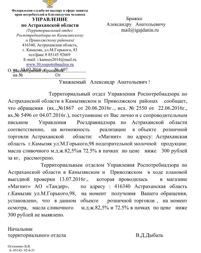 Отправлено 17.06.2016: "Управление Федеральной службы по надзору в сфере защиты прав потребителей и благополучия человека по Астраханской области"