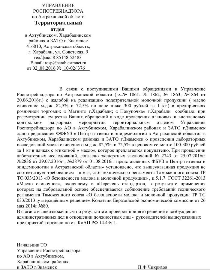 Отправлено 17.06.2016: "Управление Федеральной службы по надзору в сфере защиты прав потребителей и благополучия человека по Астраханской области"