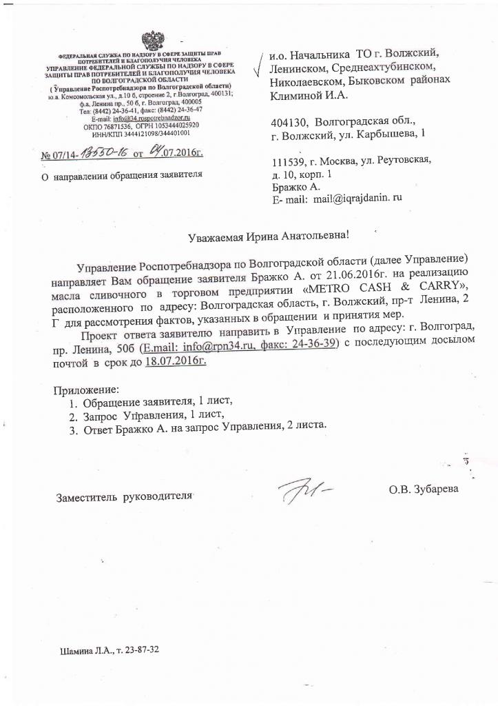 айГражданинОтправлено 17.06.2016: "Управление Федеральной службы по надзору в сфере защиты прав потребителей и благополучия человека по Волгоградской области"