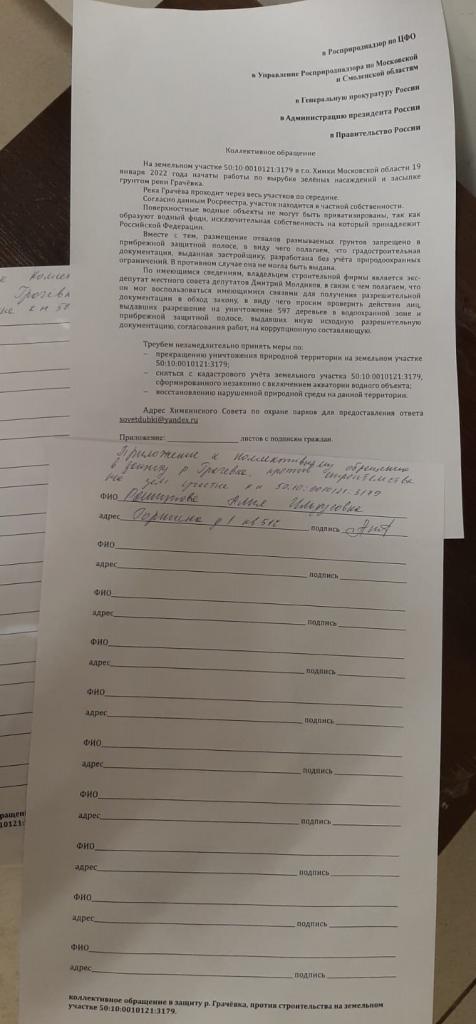 Владимир НикитинНасколько я помню там даже судебные решения были об изъятии земельного участка. Как они собираются строить, если там одни обременения? водоохранная зона реки, санитарно-защитная зона реки. Река Грачевка впадает в Химкинское водохранилище, а оно вообще-то питьевое!