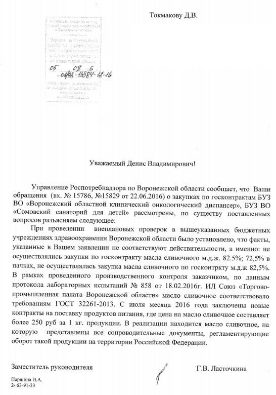 Отправлено 21.06.2016: "Управление Федеральной службы по надзору в сфере защиты прав потребителей и благополучия человека по Воронежской области"