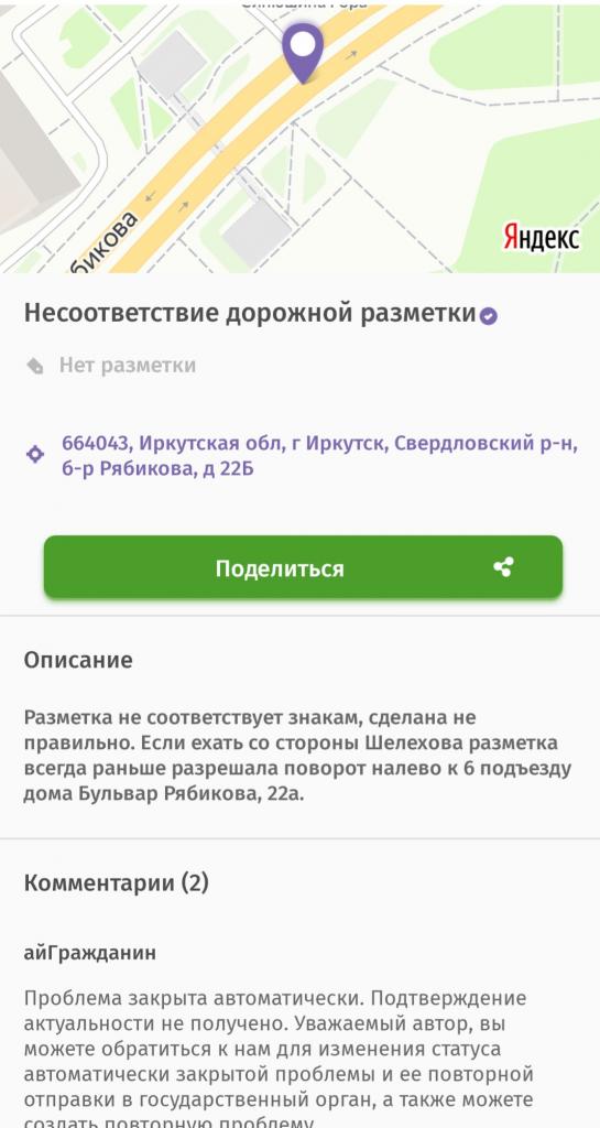 айГражданинПроблема закрыта автоматически. Подтверждение актуальности не получено. Уважаемый автор, вы можете обратиться к нам для изменения статуса автоматически закрытой проблемы и ее повторной отправки в государственный орган, а также можете создать повторную проблему.