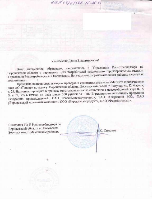 Как мне стало известно по вышеуказанному адресу осуществляется реализация подозрительной молочной продукции: масло сливочное М.Д.Ж. 82,5% и 72,5% в пачках по цене ниже 300 рублей за 1 кг.