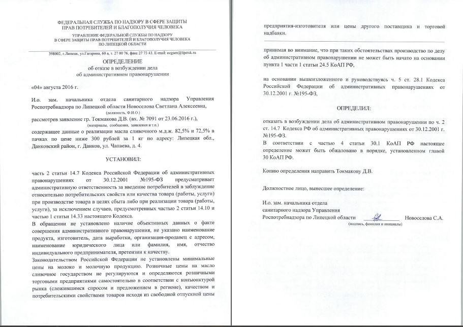 Прошу рассмотреть заявление в соответствии с КоАП РФ и, с учетом позиции Роспотребнадзора России (Письмо N01/11921-9-32 от 19.08.09), принять решения: