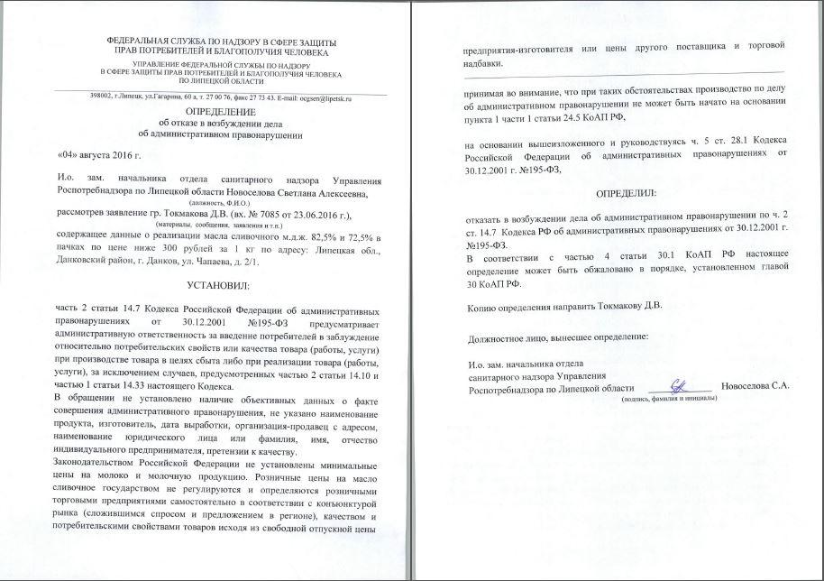 Меня, как потребителя, вводят в заблуждение относительно потребительских свойств или качеств товара при его реализации: вместо масла сливочного М.Д.Ж. 82,5% и 72,5% в ценовом сегменте 100-300 рублей за 1 кг в пачках с этикеткой «масло» предлагается к продаже иной товар.