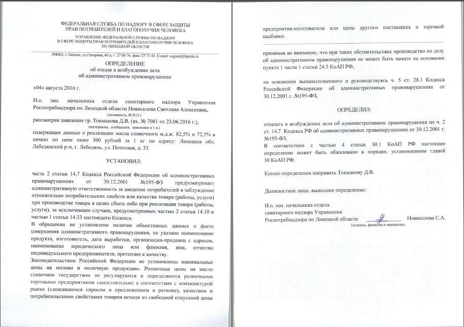 Меня, как потребителя, вводят в заблуждение относительно потребительских свойств или качеств товара при его реализации: вместо масла сливочного М.Д.Ж. 82,5% и 72,5% в ценовом сегменте 100-300 рублей за 1 кг в пачках с этикеткой «масло» предлагается к продаже иной товар.