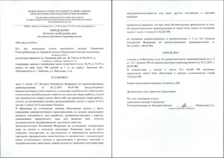 Меня, как потребителя, вводят в заблуждение относительно потребительских свойств или качеств товара при его реализации: вместо масла сливочного М.Д.Ж. 82,5% и 72,5% в ценовом сегменте 100-300 рублей за 1 кг в пачках с этикеткой «масло» предлагается к продаже иной товар.