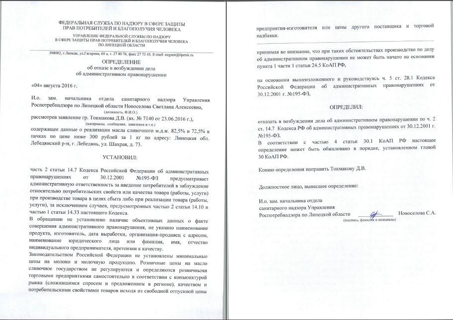 Прошу рассмотреть заявление в соответствии с КоАП РФ и, с учетом позиции Роспотребнадзора России (Письмо N01/11921-9-32 от 19.08.09), принять решения:
