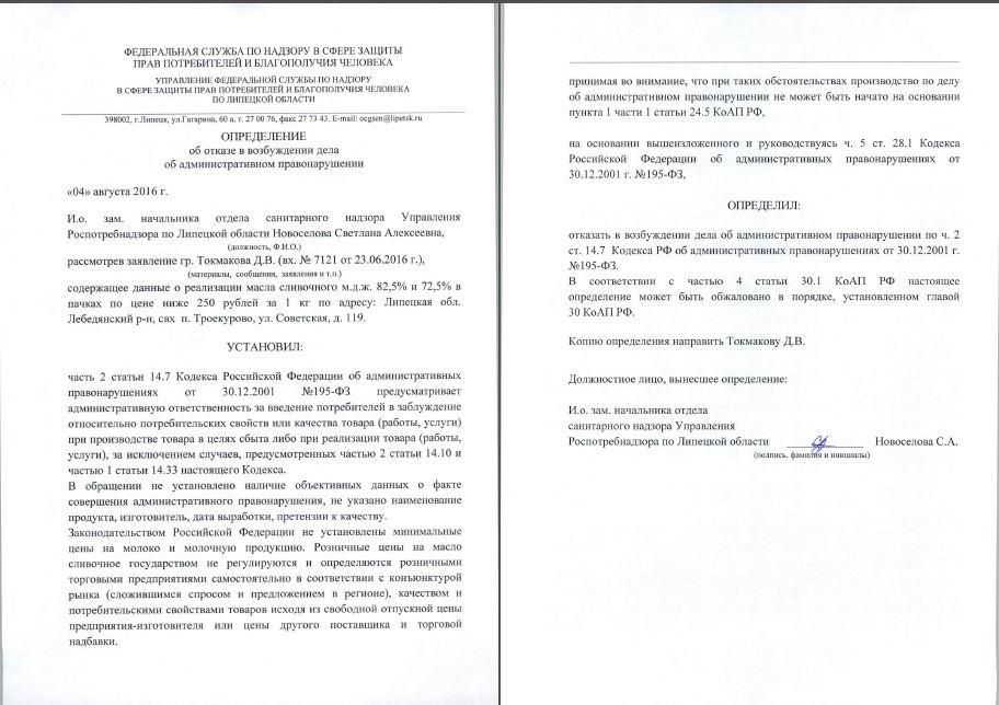 Прошу рассмотреть заявление в соответствии с КоАП РФ и, с учетом позиции Роспотребнадзора России (Письмо N01/11921-9-32 от 19.08.09), принять решения: