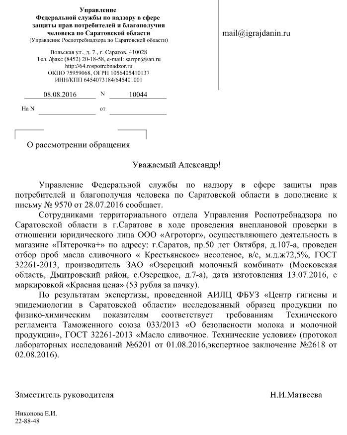 айГражданинОтправлено 27.06.2016: "Управление Федеральной службы по надзору в сфере защиты прав потребителей и благополучия человека по Саратовской области"