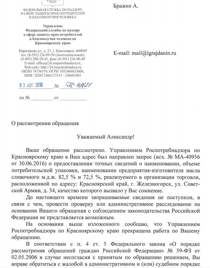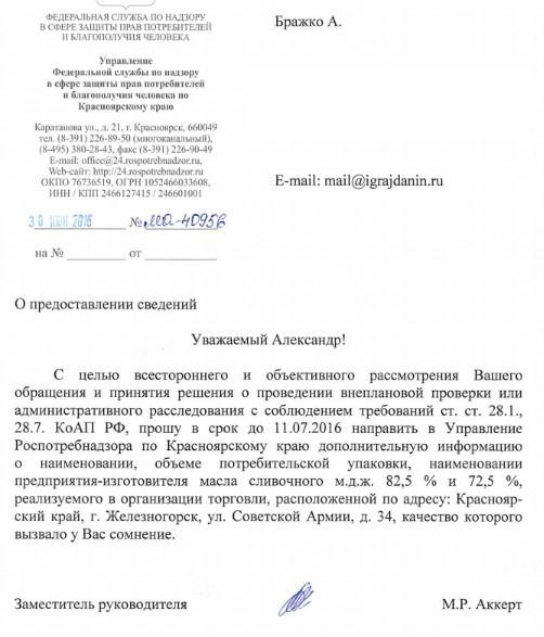 айГражданинОтправлено 28.06.2016: "Управление Роспотребнадзора по Красноярскому краю"