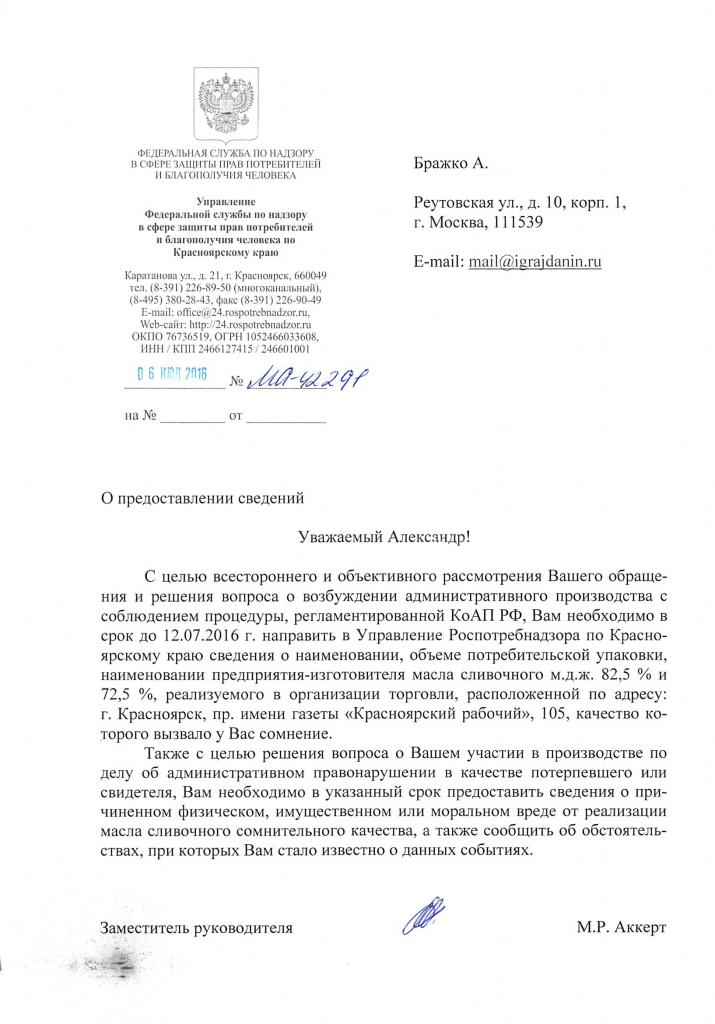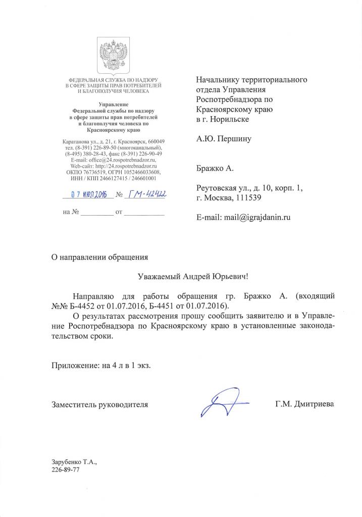 айГражданинОтправлено 30.06.2016: "Управление Роспотребнадзора по Красноярскому краю"
