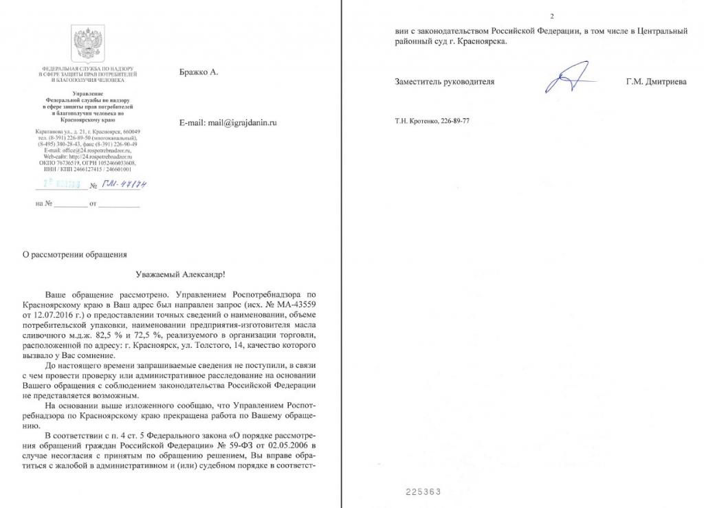 Отправлено 30.06.2016: "Управление Роспотребнадзора по Красноярскому краю"