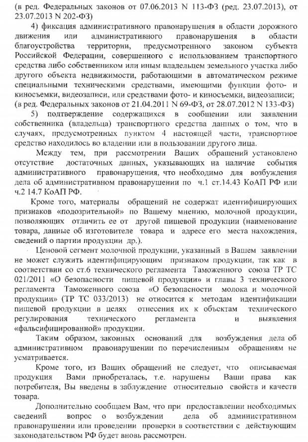 Данное заявления не является запросом на разъяснение законодательства – прошу не направлять в мой адрес документ, не предусмотренный КоАП РФ.
