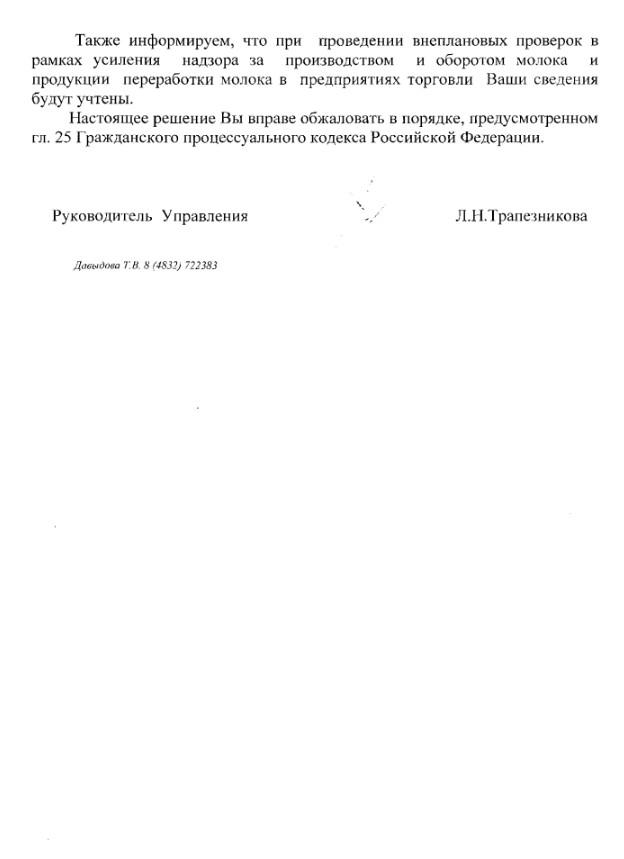 1. О проведении проверки реализации подозрительной молочной продукции по вышеуказанному адресу.