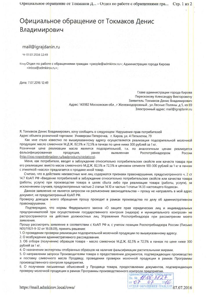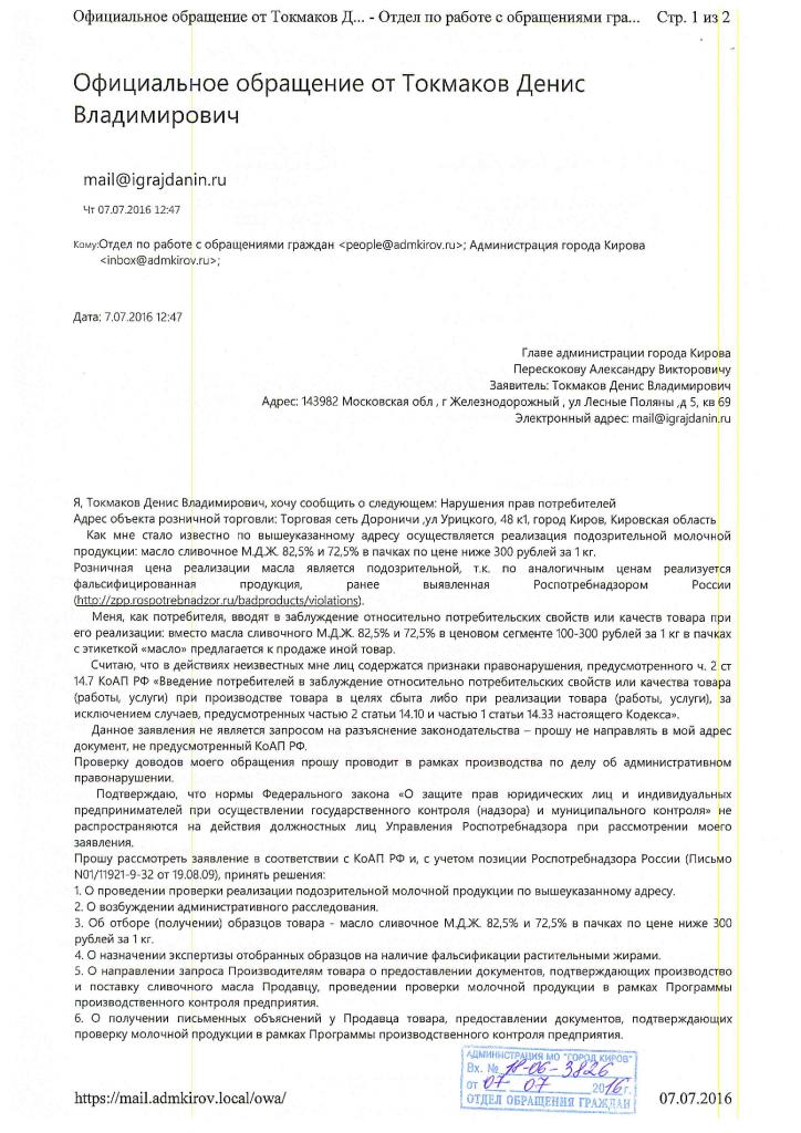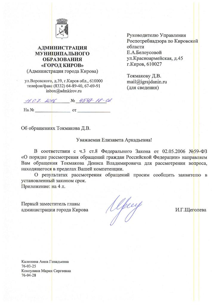 айГражданинОтправлено 07.07.2016: "Администрация города Кирова"