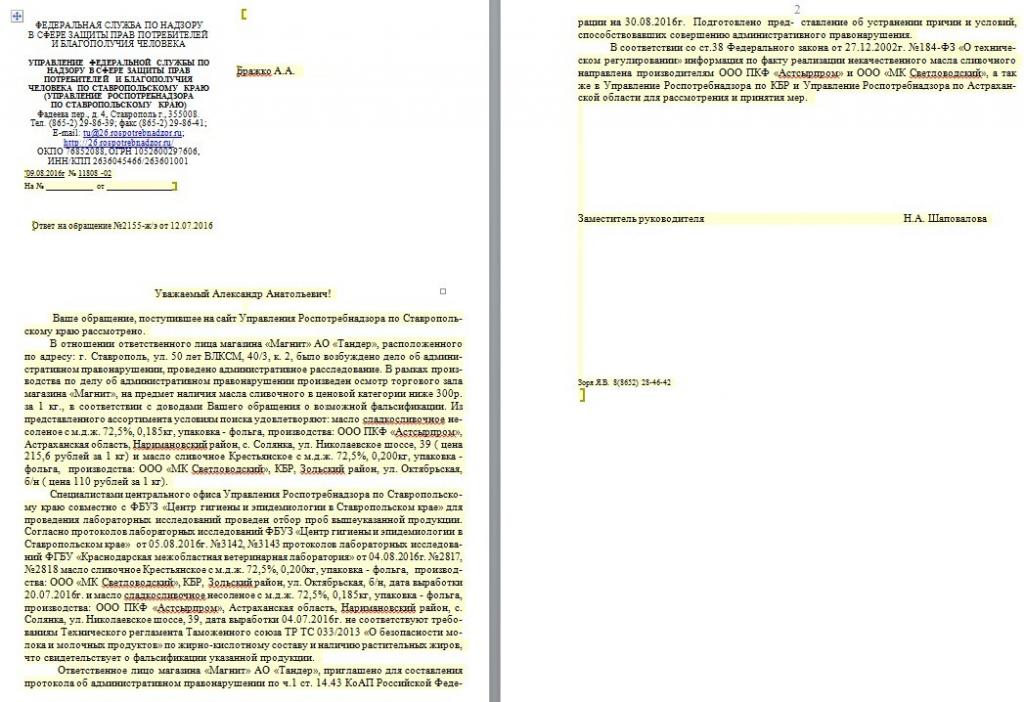 Меня, как потребителя, вводят в заблуждение относительно потребительских свойств или качеств товара при его реализации: вместо масла сливочного М.Д.Ж. 82,5% и 72,5% в ценовом сегменте 100-300 рублей за 1 кг в пачках с этикеткой «масло» предлагается к продаже иной товар.