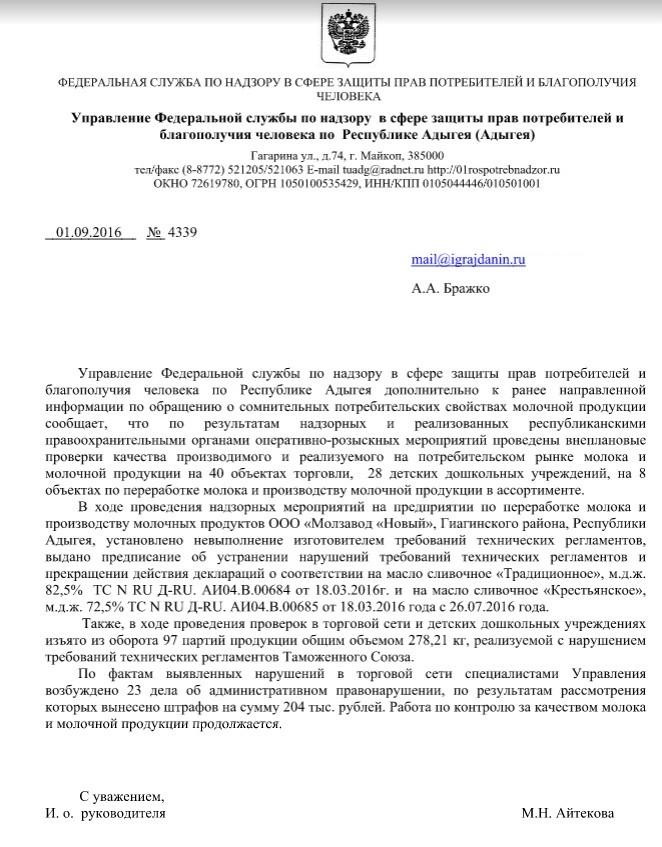 айГражданинОтправлено 29.07.2016: "Управление Роспотребнадзора по Республике Адыгея"
