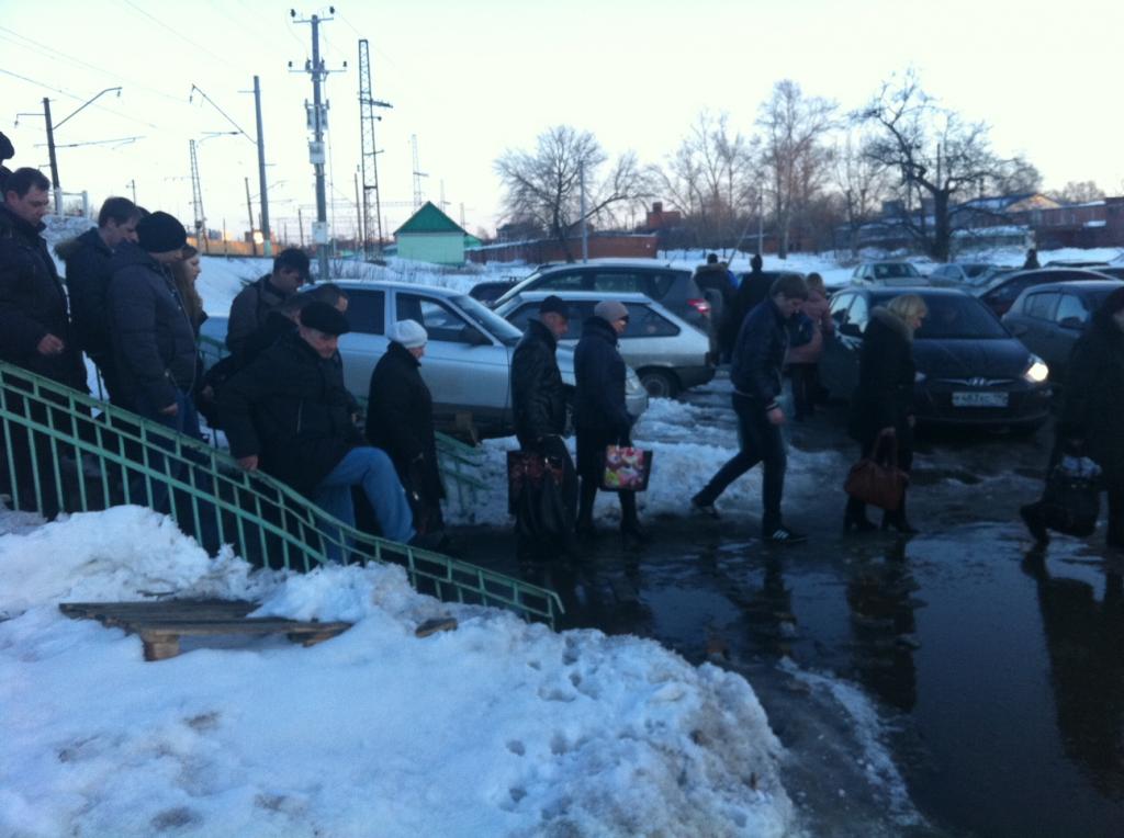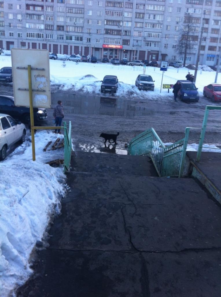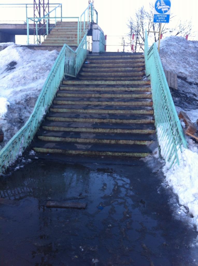 Огромная лужа в конце лестницы на ж/д станции "Коломна"